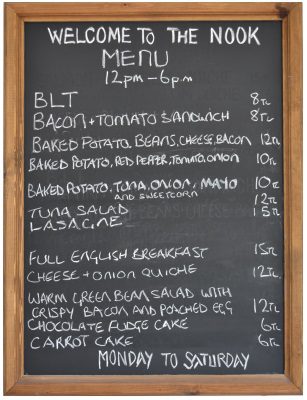 from such as – lasagne, burgers, quiche, jacket potatoes with a choice of fillings, English breakfast and much more, all well cooked and nicely presented. The Nook cafe is open from 12 noon to 6pm for meals and from 6pm to 12 midnight for drinks only. When there are special events Gail serves free mezes, prepared by the locals, to the customers.