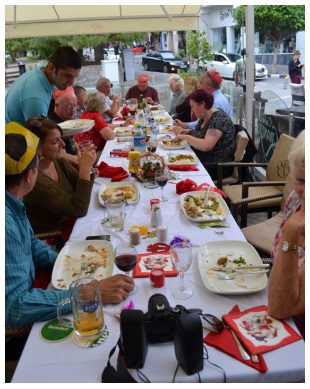 November at Cafe George, Girne for their Christmas knees up! Due to various commitments it was decided to have the meal in November bringing an early festive feel to Girne with candles, decorations, party blowers and even presents.