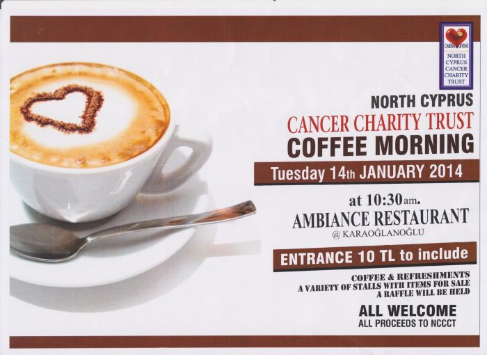 The January event will be held at the Ambiance Restaurant in Karaoğlanoğlu on 14th January starting at 10.30am and there will be a good opportunity to catch up with friends and acquaintances following the festive season and get back into a routine of supporting NCCCT which is doing brilliant work in supplying equipment to Girne State Hospital.