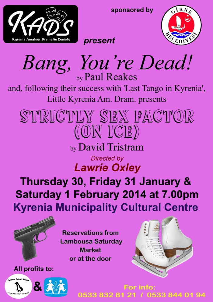 The two 1-act performances will be on Thursday, Friday and Saturday – 30th and 31st January and 1st February at the Girne Municipality Cultural Centre. Invitations are 15TL and reservations can