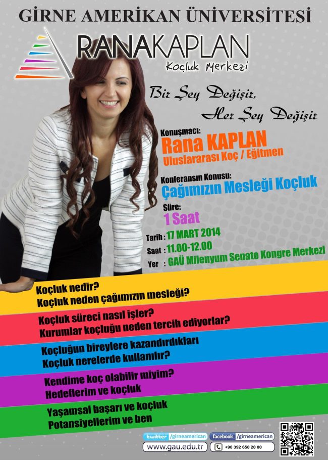 The interest in life coaching has continuously increased since life coaching became a professional field and officially recognized. Girne American University (GAU), on the eve of its 30th Academic Year, welcomes Rana Kaplan, the General Director of Rana Kaplan Coaching Centre, with the “COACHING: THE OCCUPATION OF OUR ERA” conference.