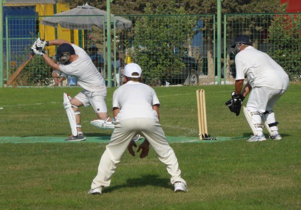 Pitch Manager Tad Haigh together with scorer Ian Fell, admitted afterwards with relieved smiles, the game nearly hadn’t happened. Until lunch time the day before, the artificial pitch, which had been loaned by the Cyprus Cricket Association in the South, had been impounded by the North’s Customs Department due to the cricket club making an administrative error. Only after several visits and phone calls to senior officials did it get resolved.