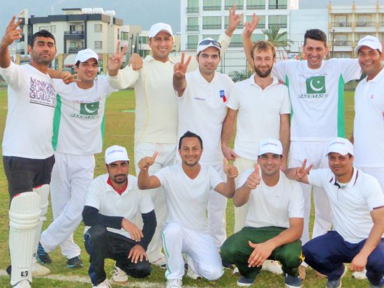 Following a delayed start due to an overrunning football match, the cricket was reduced to 18 over/side and finally got under way at 1.30pm. TRNC again won the toss and put Nicosia into bat. The North’s outstanding opening bowlers Jan Wali Khan and Sajjad Kamal soon reduced them to 33 for 4. However, like the previous week, the visitor’s middle order of Bob Randall 25 and Dan Brown 37 swung the match away from the TRNC bringing their total to 104 for 4 with 6 overs remaining. Scorer Ian Fell said he thought a formidable total of around 165 was on the cards. Then the turnaround began, the big safe hands of Sajjad Kamal catching off Rehmat and another skied catch by Arabshah this time with Sajjad’s bowling, saw both batsmen return to the pavilion. The game’s fortunes quickly swung again with wickets quickly falling and only one further batsman managing to trouble the scorers. With one ball of the innings remaining, Jawad did the basics right, bowling straight and full taking the last wicket for a very gettable total of 109 and importantly only earning the visitors 3 batting league bonus points. The inning’s highlights being Janwali Khan taking out the top order with 4 for 19 and Tad Haigh’s acrobatics behind the stumps on a particularly difficult wicket to keep on.