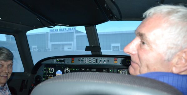 Chris was then asked if he would like to land, of course he was happy to do this and he took over and we then had the runway at Ercan Airport on the screen. He made a smooth landing, I am glad to say, and then taxied to the front of the airport building, which was by then showing on the screen. This experience was superb and we cannot thank Koray enough for the amount of time he spent with us. He obviously loves his job and although not now flying for an airline, he is so enthusiastic about training new pilots to a high level which in turn will ensure the airways are as safe as they can possibly be.