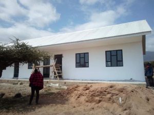 “ We will have 4 classrooms. Two are finished ready to be used. Two are not yet completed. There will be two offices, the one for the teachers is finished but the one for the Principal is not yet completed. We discussed that the teachers should stay at the Primary School teacher’s house where they have the extra space, but later we will start building houses for the teachers. We are looking for more than 6 teachers.